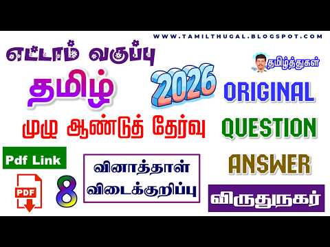 வகுப்பு 8 தமிழ் முழு ஆண்டுத் தேர்வு வினாத்தாள் விடைக்குறிப்பு விருதுநகர் 8th tamil question answer key 2026